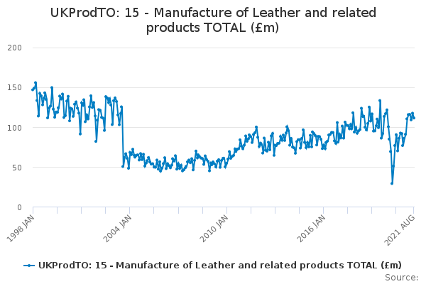 Download this time seriesUKProdTO: 15 - Manufacture of Leather and related products TOTAL (£m)