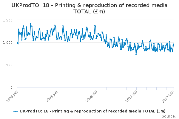 Download this time seriesUKProdTO: 18 - Printing & reproduction of recorded media TOTAL (£m)