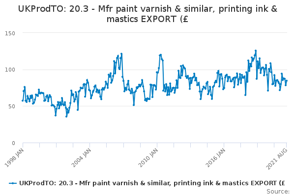 Download this time seriesUKProdTO: 20.3 - Mfr paint varnish & similar, printing ink & mastics EXPORT (£