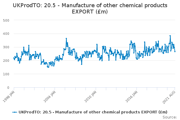 Download this time seriesUKProdTO: 20.5 - Manufacture of other chemical products EXPORT (£m)