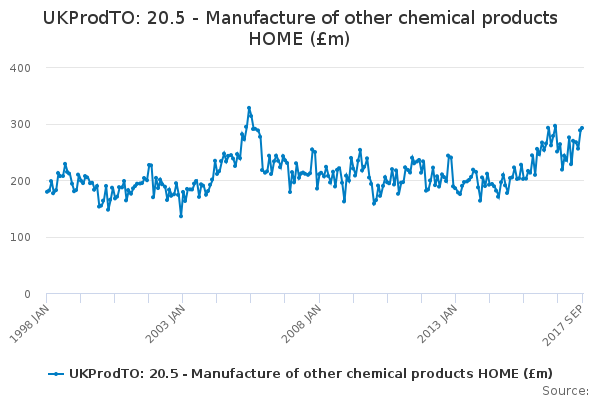 Download this time seriesUKProdTO: 20.5 - Manufacture of other chemical products HOME (£m)