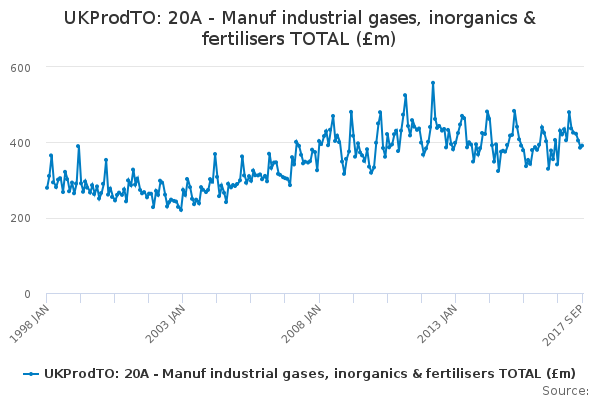 Download this time seriesUKProdTO: 20A - Manuf industrial gases, inorganics & fertilisers TOTAL (£m)