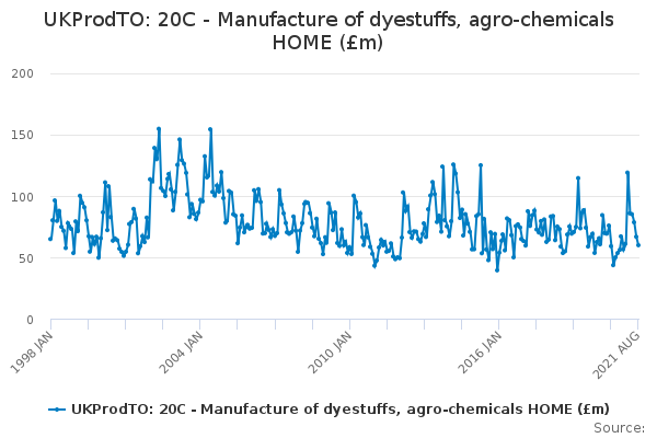 Download this time seriesUKProdTO: 20C - Manufacture of dyestuffs, agro-chemicals HOME (£m)