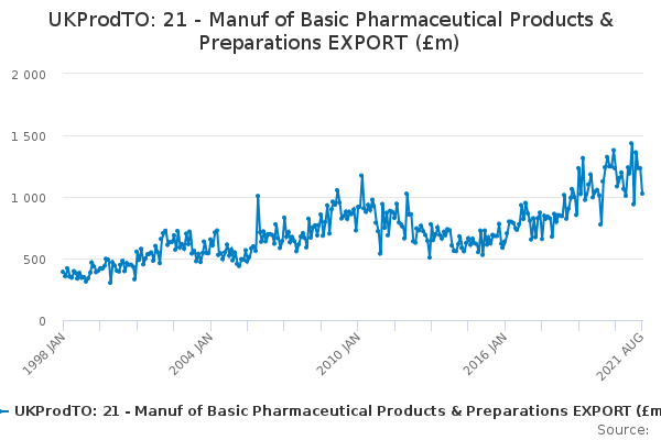 Download this time seriesUKProdTO: 21 - Manuf of Basic Pharmaceutical Products & Preparations EXPORT (£m)