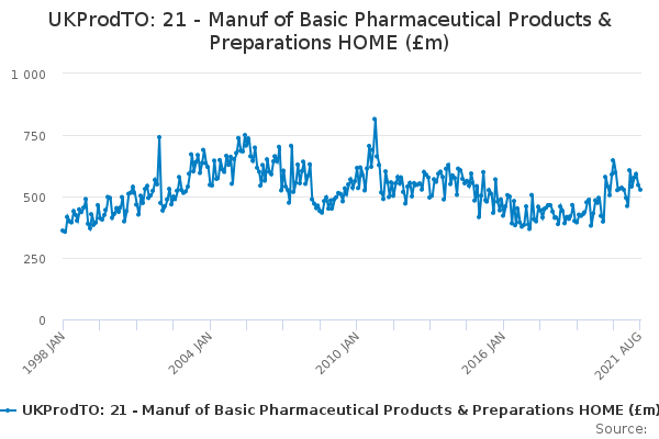 Download this time seriesUKProdTO: 21 - Manuf of Basic Pharmaceutical Products & Preparations HOME (£m)