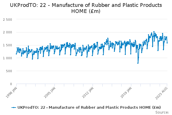 Download this time seriesUKProdTO: 22 - Manufacture of Rubber and Plastic Products HOME (£m)