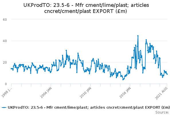 Download this time seriesUKProdTO: 23.5-6 - Mfr cment/lime/plast; articles cncret/cment/plast EXPORT (£m)