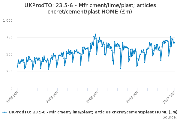 Download this time seriesUKProdTO: 23.5-6 - Mfr cment/lime/plast; articles cncret/cement/plast HOME (£m)