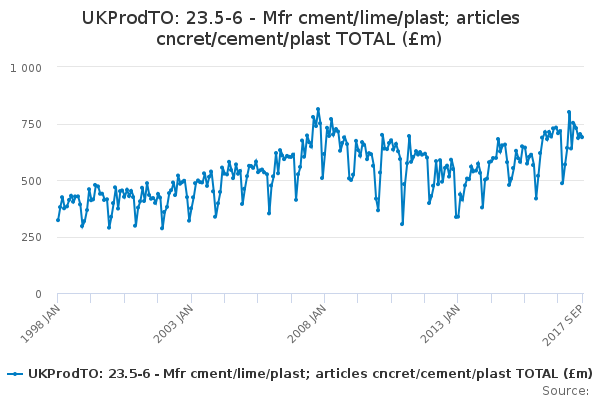 Download this time seriesUKProdTO: 23.5-6 - Mfr cment/lime/plast; articles cncret/cement/plast TOTAL (£m)