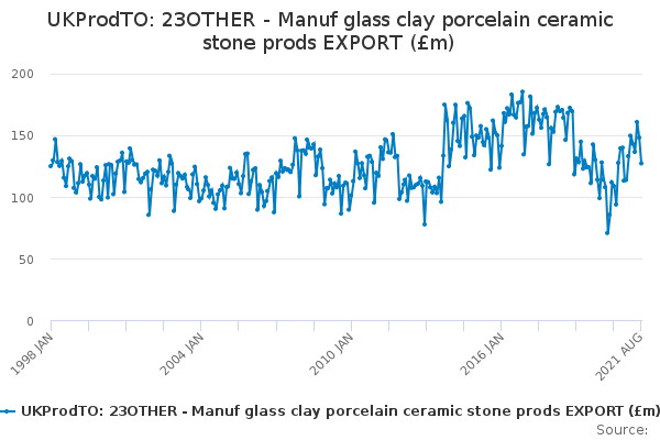 Download this time seriesUKProdTO: 23OTHER - Manuf glass clay porcelain ceramic stone prods EXPORT (£m)