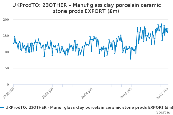 Download this time seriesUKProdTO: 23OTHER - Manuf glass clay porcelain ceramic stone prods EXPORT (£m)