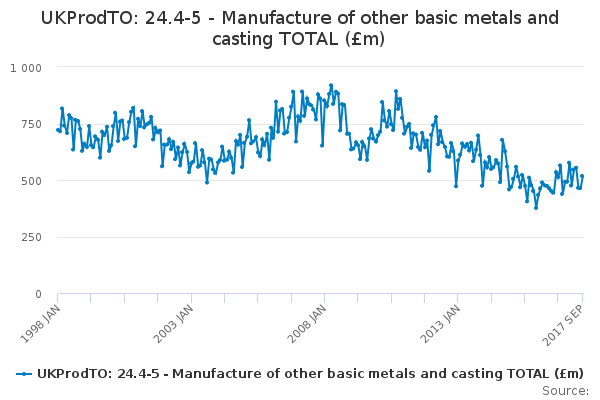 Download this time seriesUKProdTO: 24.4-5 - Manufacture of other basic metals and casting TOTAL (£m)