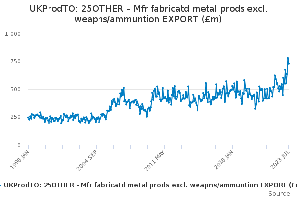 Download this time seriesUKProdTO: 25OTHER - Mfr fabricatd metal prods excl. weapns/ammuntion EXPORT (£m)