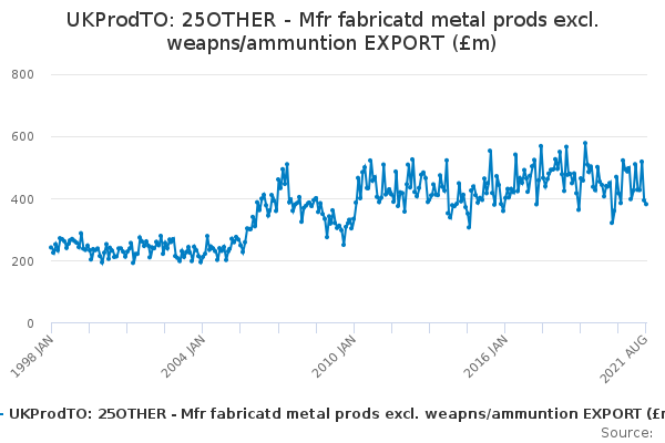 Download this time seriesUKProdTO: 25OTHER - Mfr fabricatd metal prods excl. weapns/ammuntion EXPORT (£m)