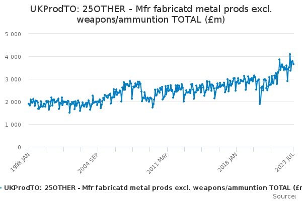 Download this time seriesUKProdTO: 25OTHER - Mfr fabricatd metal prods excl. weapons/ammuntion TOTAL (£m)
