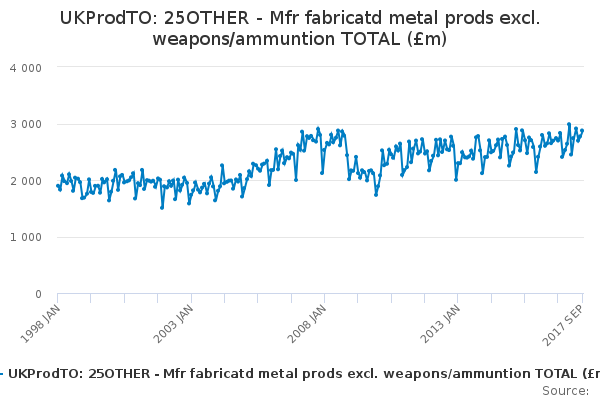 Download this time seriesUKProdTO: 25OTHER - Mfr fabricatd metal prods excl. weapons/ammuntion TOTAL (£m)