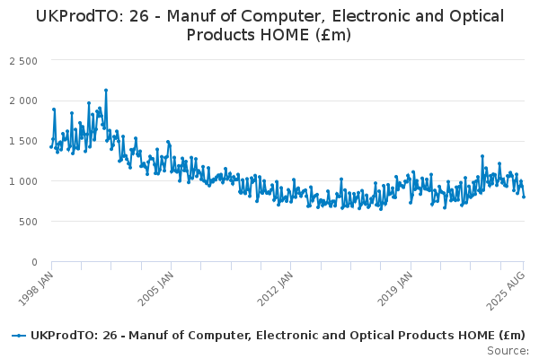 Download this time seriesUKProdTO: 26 - Manuf of Computer, Electronic and Optical Products HOME (£m)