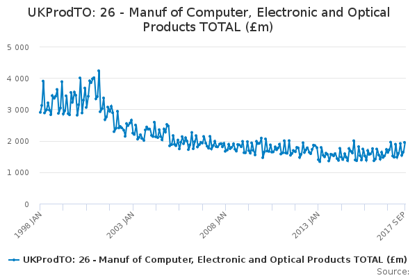 Download this time seriesUKProdTO: 26 - Manuf of Computer, Electronic and Optical Products TOTAL (£m)