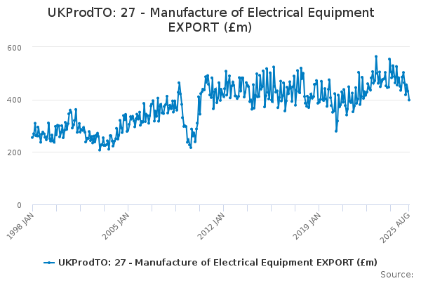 Download this time seriesUKProdTO: 27 - Manufacture of Electrical Equipment EXPORT (£m)