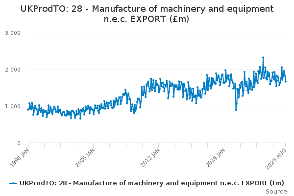Download this time seriesUKProdTO: 28 - Manufacture of machinery and equipment n.e.c. EXPORT (£m)