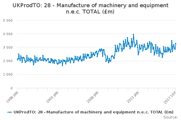 Download this time seriesUKProdTO: 28 - Manufacture of machinery and equipment n.e.c. TOTAL (£m)