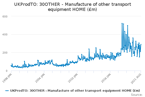 Download this time seriesUKProdTO: 30OTHER - Manufacture of other transport equipment HOME (£m)