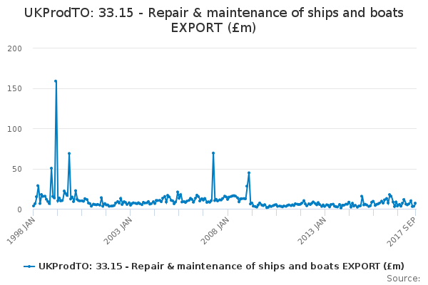 Download this time seriesUKProdTO: 33.15 - Repair & maintenance of ships and boats EXPORT (£m)