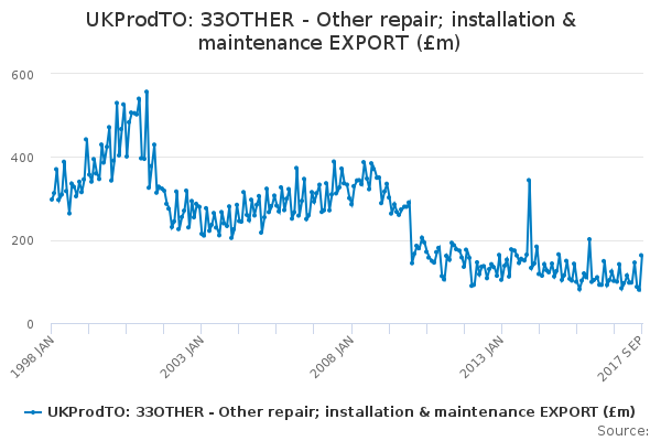 Download this time seriesUKProdTO: 33OTHER - Other repair; installation & maintenance EXPORT (£m)