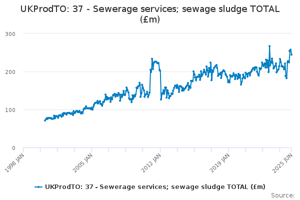 Download this time seriesUKProdTO: 37 - Sewerage services; sewage sludge TOTAL (£m)