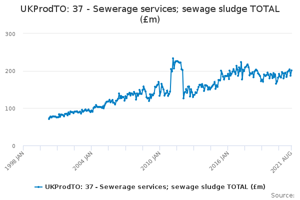 Download this time seriesUKProdTO: 37 - Sewerage services; sewage sludge TOTAL (£m)