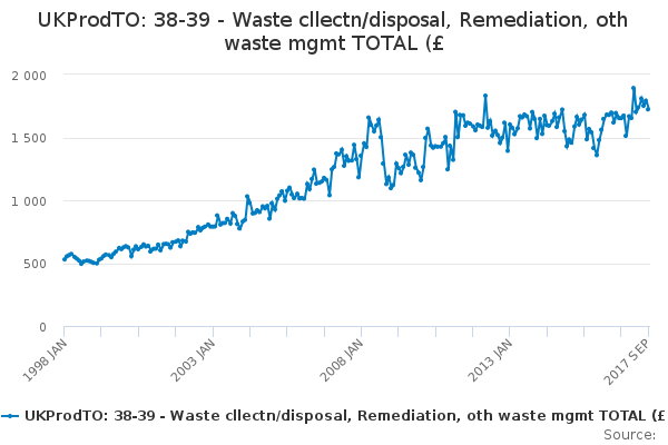Download this time seriesUKProdTO: 38-39 - Waste cllectn/disposal, Remediation, oth waste mgmt TOTAL (£
