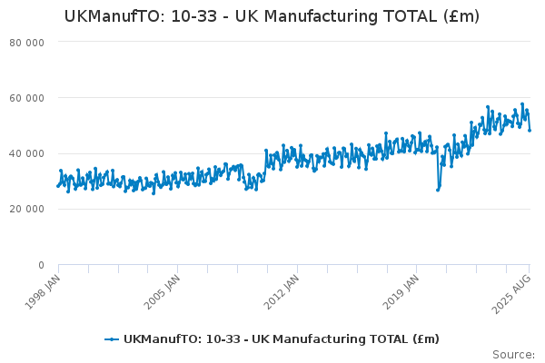 Download this time seriesUKManufTO: 10-33 - UK Manufacturing TOTAL (£m)