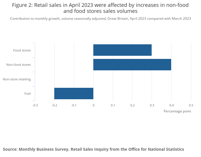 Figure 2: Retail sales in April 2023 were affected by increases in non-food and food stores sales volumes