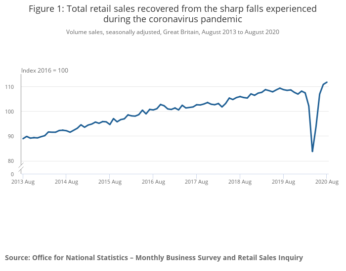 Figure 1: Total retail sales recovered from the sharp falls experienced during the coronavirus pandemic