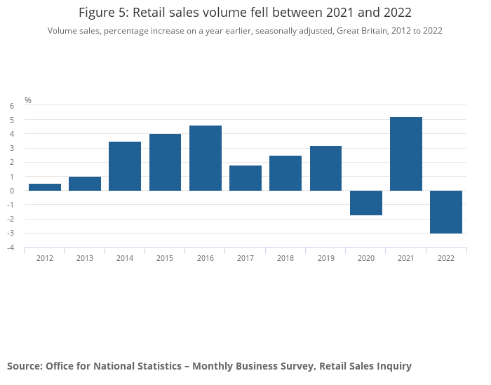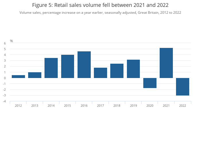 Figure 5: Retail sales volume fell between 2021 and 2022