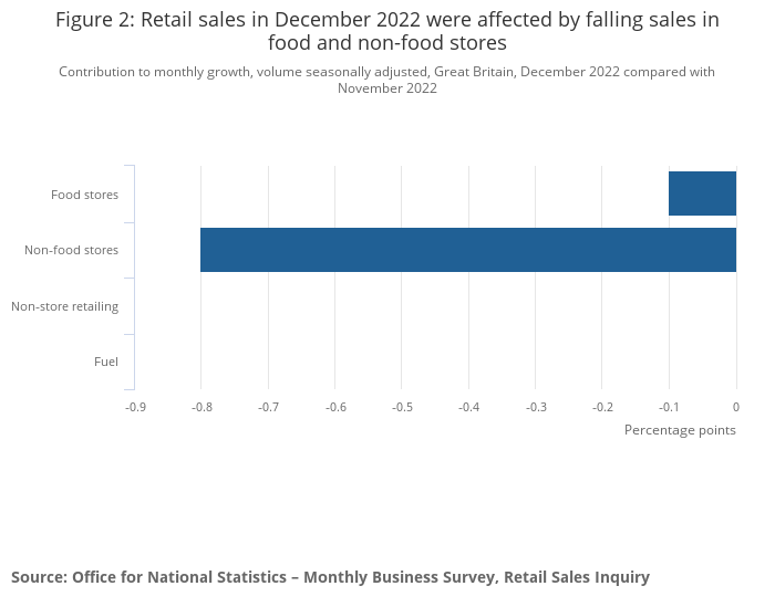 Figure 2: Retail sales in December 2022 were affected by falling sales in food and non-food stores