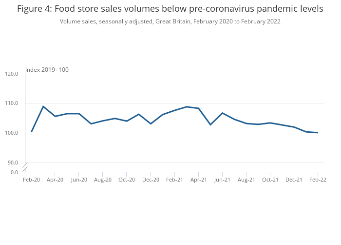 Download this chart Figure 4: Food store sales volumes below pre-coronavirus pandemic levels