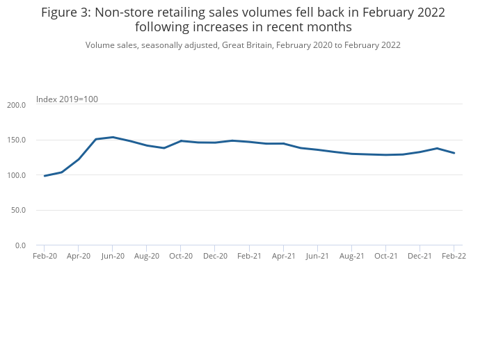Figure 3: Non-store retailing sales volumes fell back in February 2022 following increases in recent months