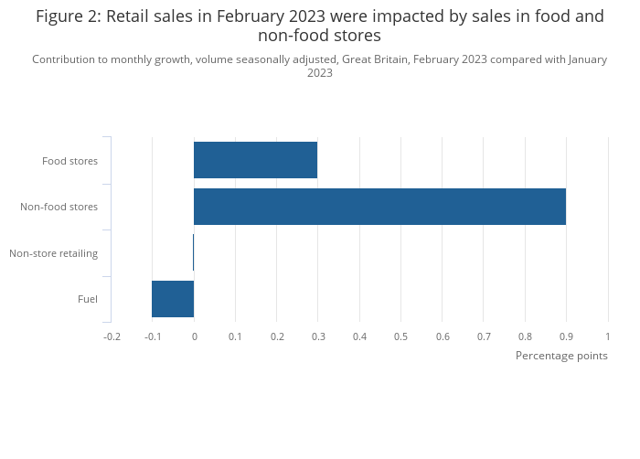 Figure 2: Retail sales in February 2023 were impacted by sales in food and non-food stores