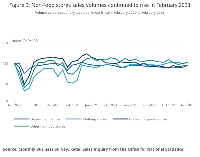 Figure 3: Non-food stores sales volumes continued to rise in February 2023