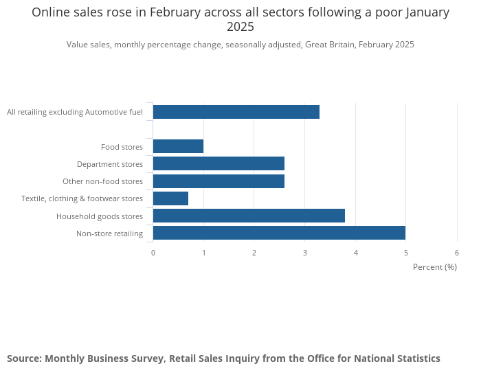 Online sales rose in February across all sectors following a poor January 2025