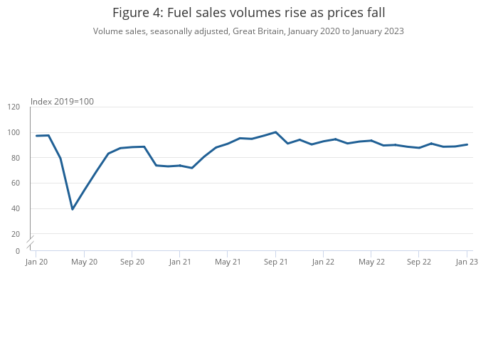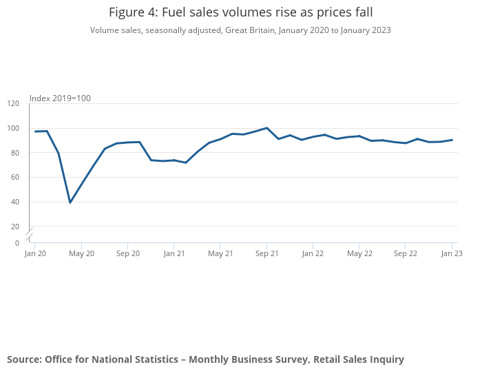 Automotive fuel sales volumes rose by 1.7% in January 2023, following a rise of 0.3% in December 2022 as fuel prices continued to fall.