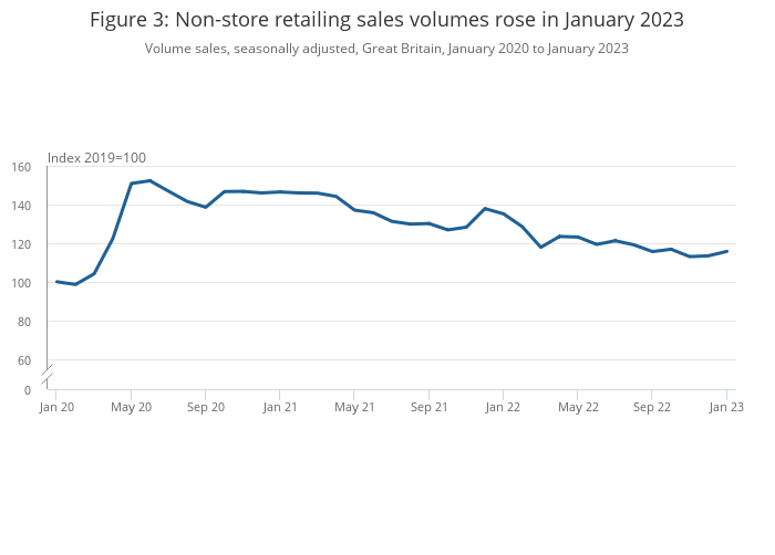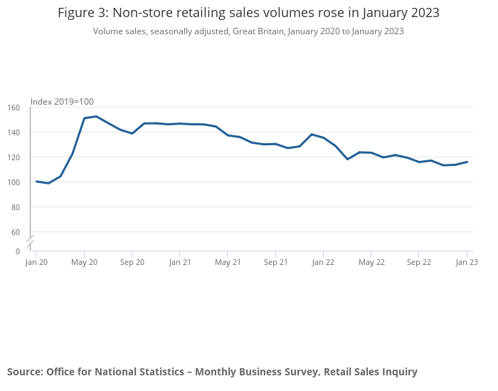 Figure 3: Non-store retailing sales volumes rose in January 2023