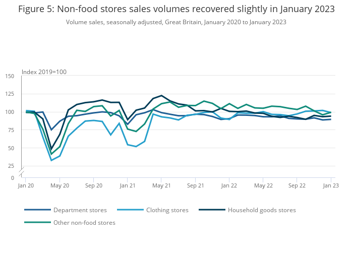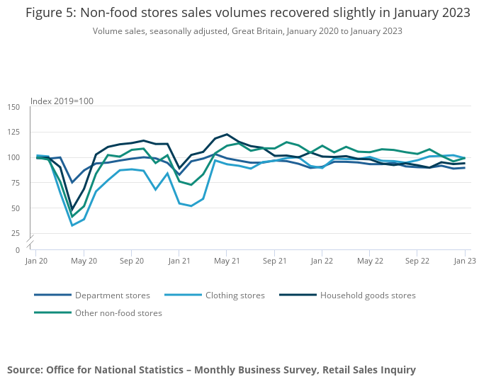 Figure 5: Non-food stores sales volumes recovered slightly in January 2023