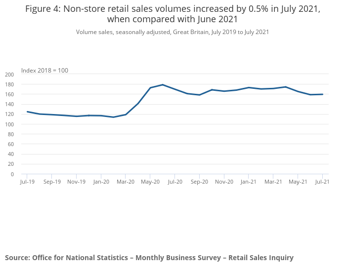 Figure 4: Non-store retail sales volumes increased by 0.5% in July 2021, when compared with June 2021