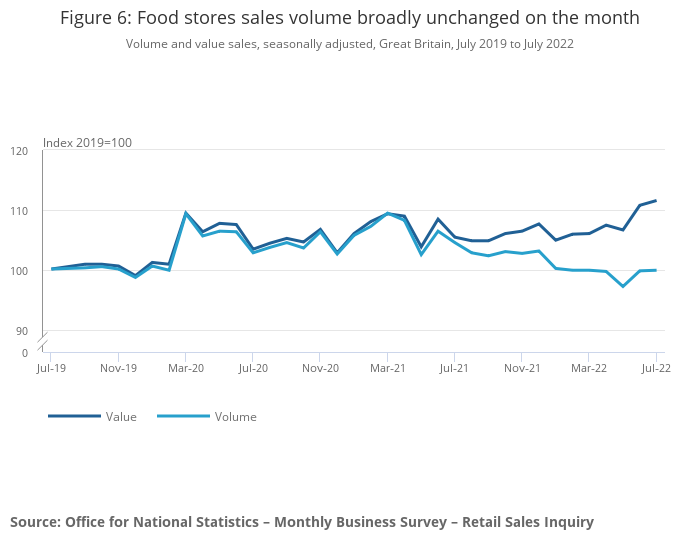 In recent months, retailers have highlighted that they are seeing a decline in volumes sold because of increased food prices and cost of living impacts.