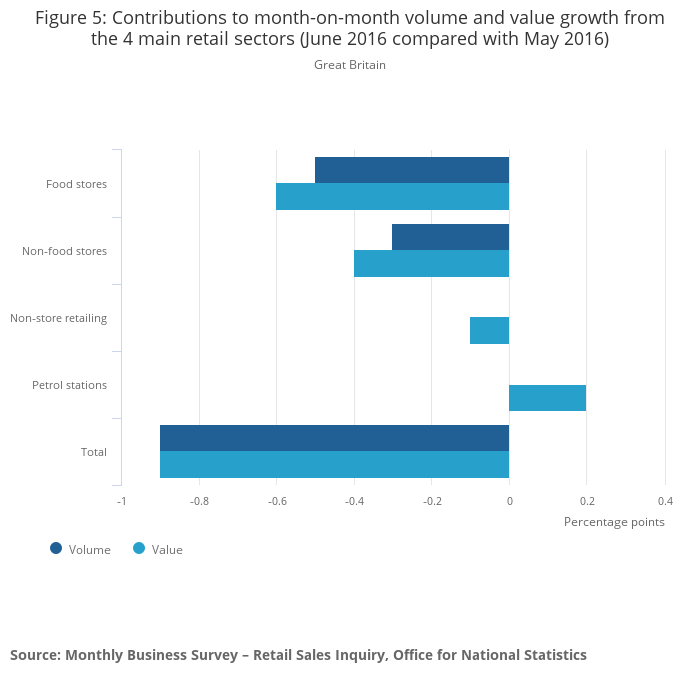 Figure 5: Contributions to month-on-month volume and value growth from the 4 main retail sectors (June 2016 compared with May 2016)