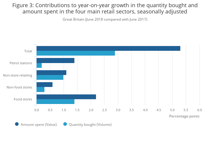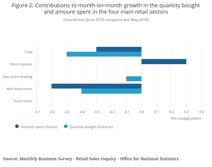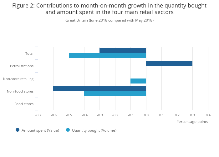 Image .csv .xlsIn June 2018, both the amount spent and quantity bought showed a negative contribution to growth at 0.3 and 0.5 percentage points respectively.