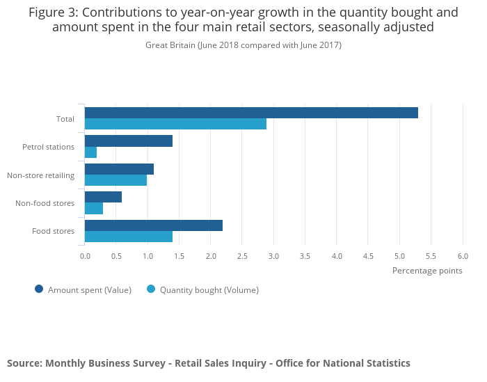 “Retail sales grew strongly across the three months to June 2018 as the warm weather encouraged shoppers to buy food and drink for their BBQs.