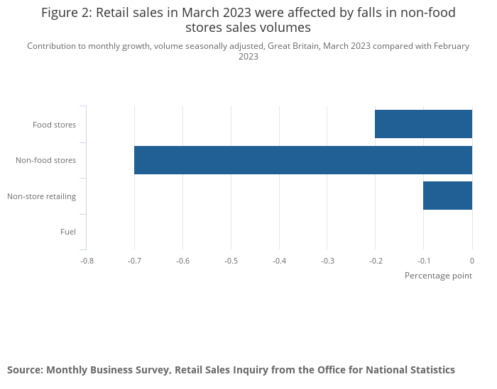 Figure 2: Retail sales in March 2023 were affected by falls in non-food stores sales volumes